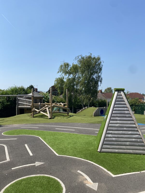 We know that children enjoy learning in lots of different ways and understand the importance of using the outdoor space to support all areas of learning. We have a wonderful outdoor area that was redesigned and updated in 2020. It now incorporates lots of different learning areas. Each one of these spaces lends itself to a different area of learning and development e.g. clamber stacks for gross motor development, a stage for imaginative play and a two story den which allows us to take a range of lessons outdoors.