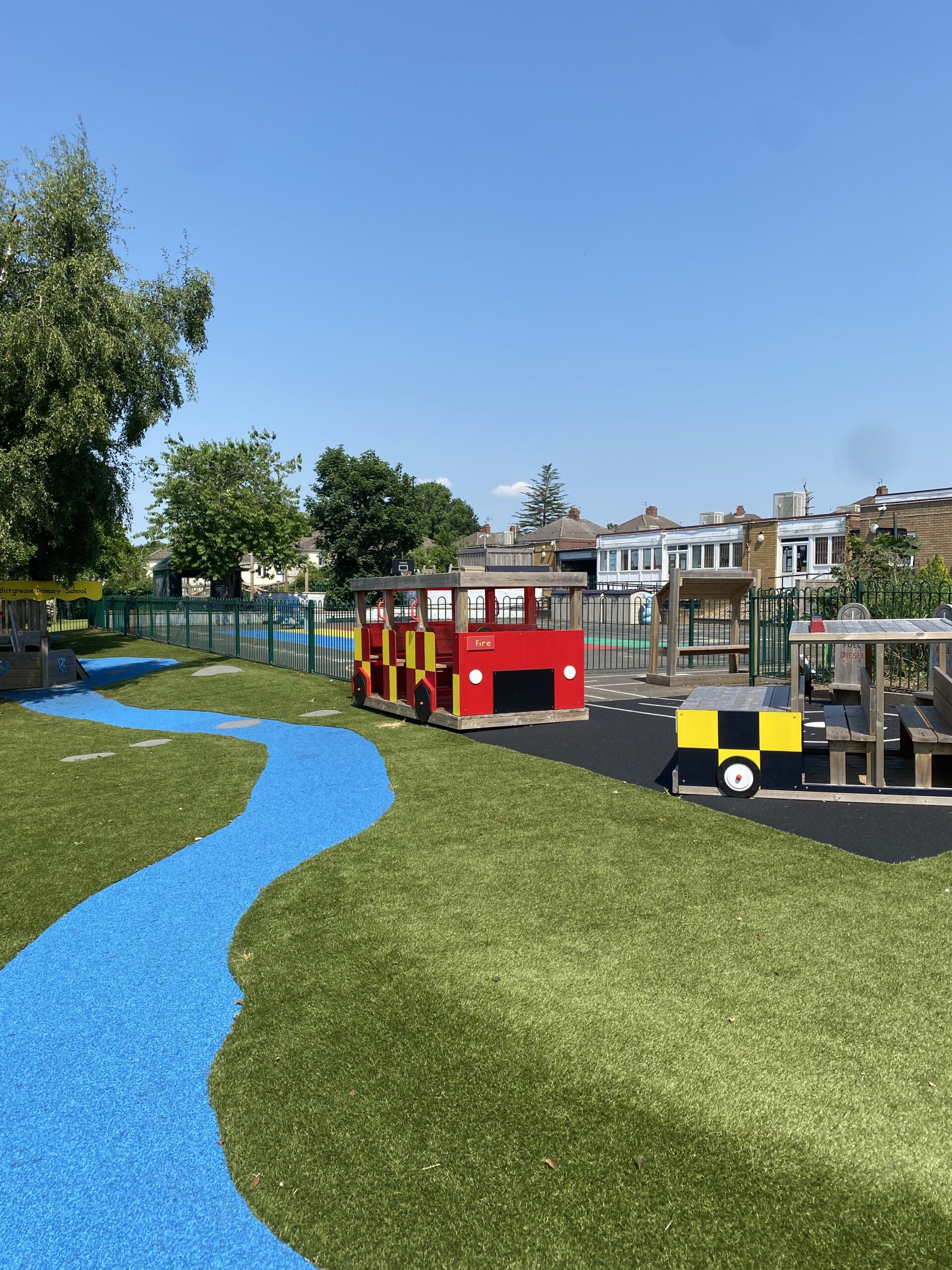 We know that children enjoy learning in lots of different ways and understand the importance of using the outdoor space to support all areas of learning. We have a wonderful outdoor area that was redesigned and updated in 2020. It now incorporates lots of different learning areas. Each one of these spaces lends itself to a different area of learning and development e.g. clamber stacks for gross motor development, a stage for imaginative play and a two story den which allows us to take a range of lessons outdoors.